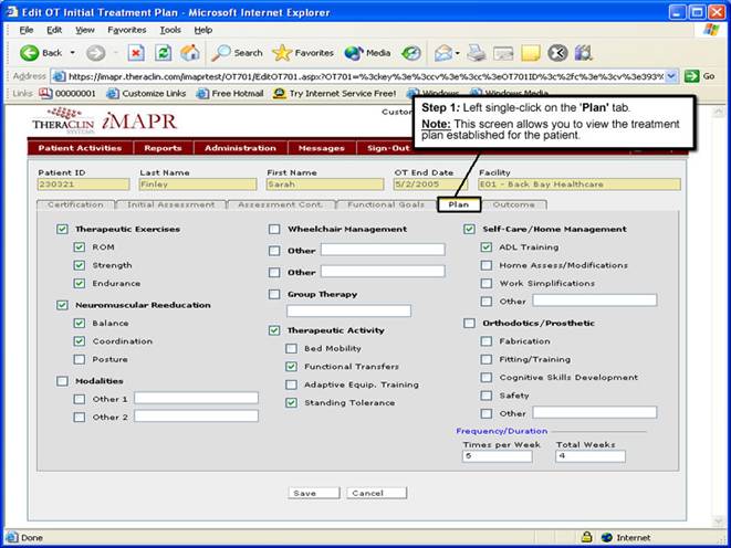 Step 4: Accessing the Initial Treatment Plan Selection Screen