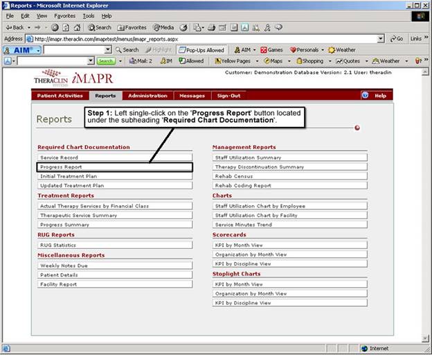 To access the Reporting Menu left single-click on the ‘Reports’ button (highlighted in gray) located on the main horizontal menu bar.