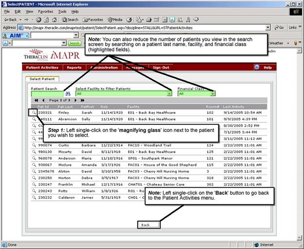 1. Left single-click on the ‘magnifying glass' icon next to the patient that you wish to print and/or view the report.